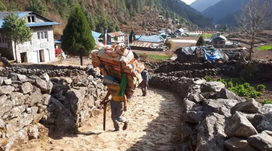 Potters carrying the goods of trekkers toward Everest base camp